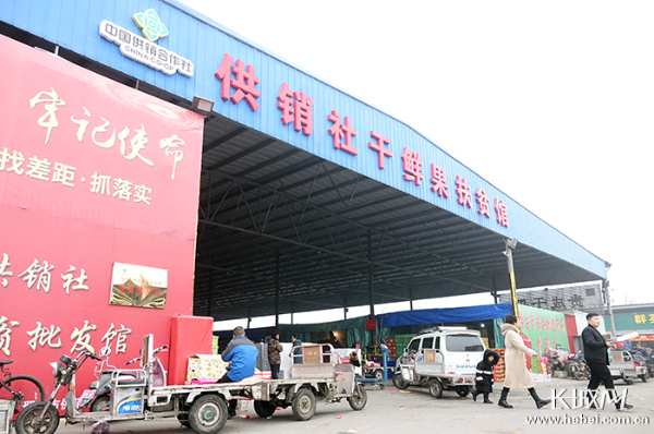 邢台市供销社果品批发市场是该市唯一的大型干鲜果品交易批发市场,年交易量达50万吨,交易额60亿元,上联数以万计的广大果农,下联遍布全市的销售终端,仅市区就联结了北国、家乐园、华天等大中小型超市,涉及200多个连锁店,5000多个零散摊点。